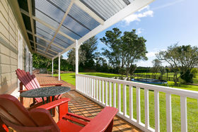 The stylish interactive kitchen, separate dining and living areas ensure entertaining or family evenings are memorable, with the substantial wood burner completing unsurpassed ambience. French doors open onto a large private courtyard facilitating indoor/outdoor living, requiting the quintessential Kiwiana love of al fresco dining.